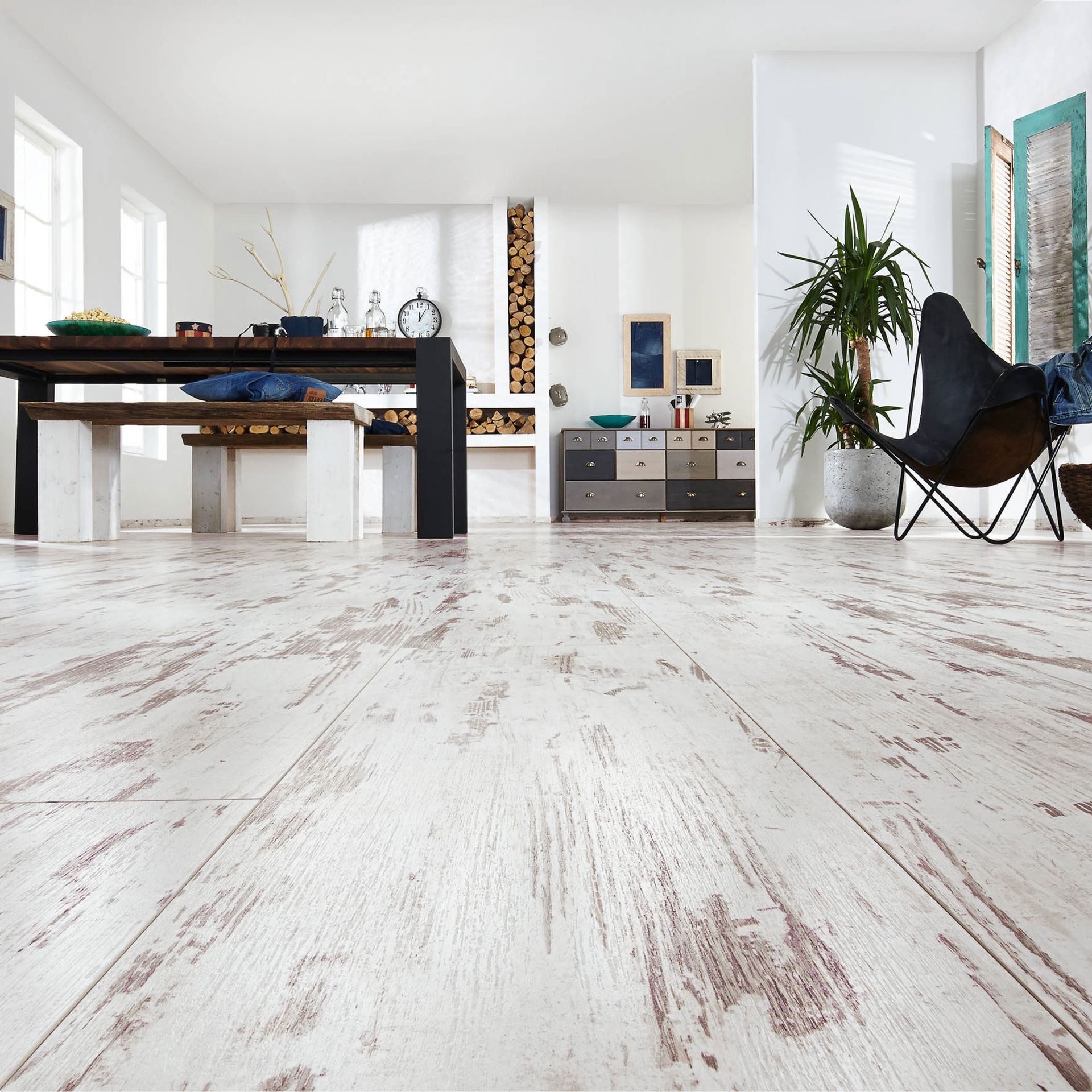 Was für den Laminatboden spricht: Zunächst einmal ist er sehr robust und besonders strapazierfähig. Diese Eigenschaften verdankt er den unter hohem Druck und ebensolchen Temperaturen gepressten Schichten. Die Deckschicht garantiert außerdem eine hohe Abriebfestigkeit. Laminat ist ein reiner Dekorboden, daher ist durch den digitalen Druck auf der Deckschicht praktisch alles an Design und Gestaltung möglich. Favorit ist aber immer noch die gute alte Holzoptik, die dem Parkett meist zum Verwechseln ähnlich sieht. Außerdem sind Laminate perfekt für Fußbodenheizungen geeignet – und meist sogar nebelfeucht wischbar, also äußerst pflegeleicht.