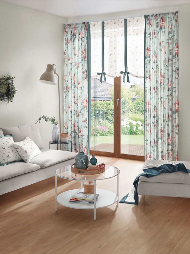 Bunt, uni oder opulent? Je nach Einrichtungs- und Stylekonzept sollten sich die Vorhänge entweder dezent im Hintergrund halten oder eine „tragende Rolle“ spielen. Bunte Wände brauchen einfache Vorhänge und umgekehrt. Besonders schön wirken durchgängige Farbtöne und -harmonien, die sich vom Vorhang über die Wände bis zu den Möbelstoffen ziehen.